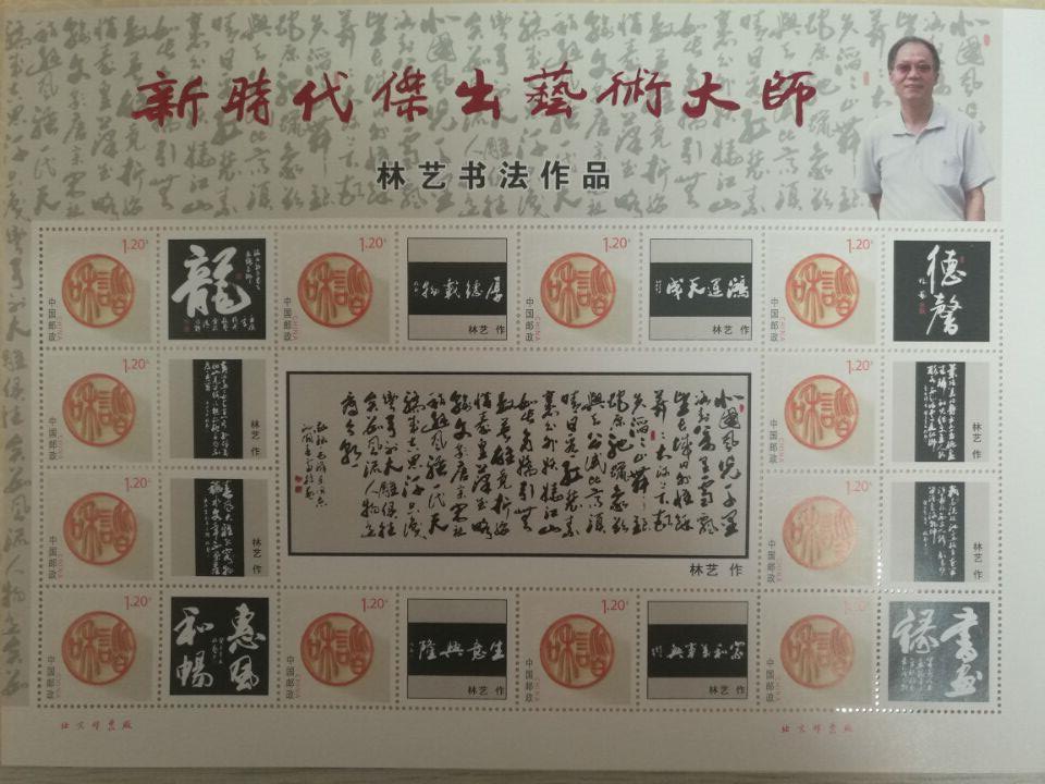 1. 书法家林艺先生“滚滚长江东逝水”书法作品一幅,附赠“中华名家专题纪念邮票”(册页)1份,参考价3800元(详见清单)。