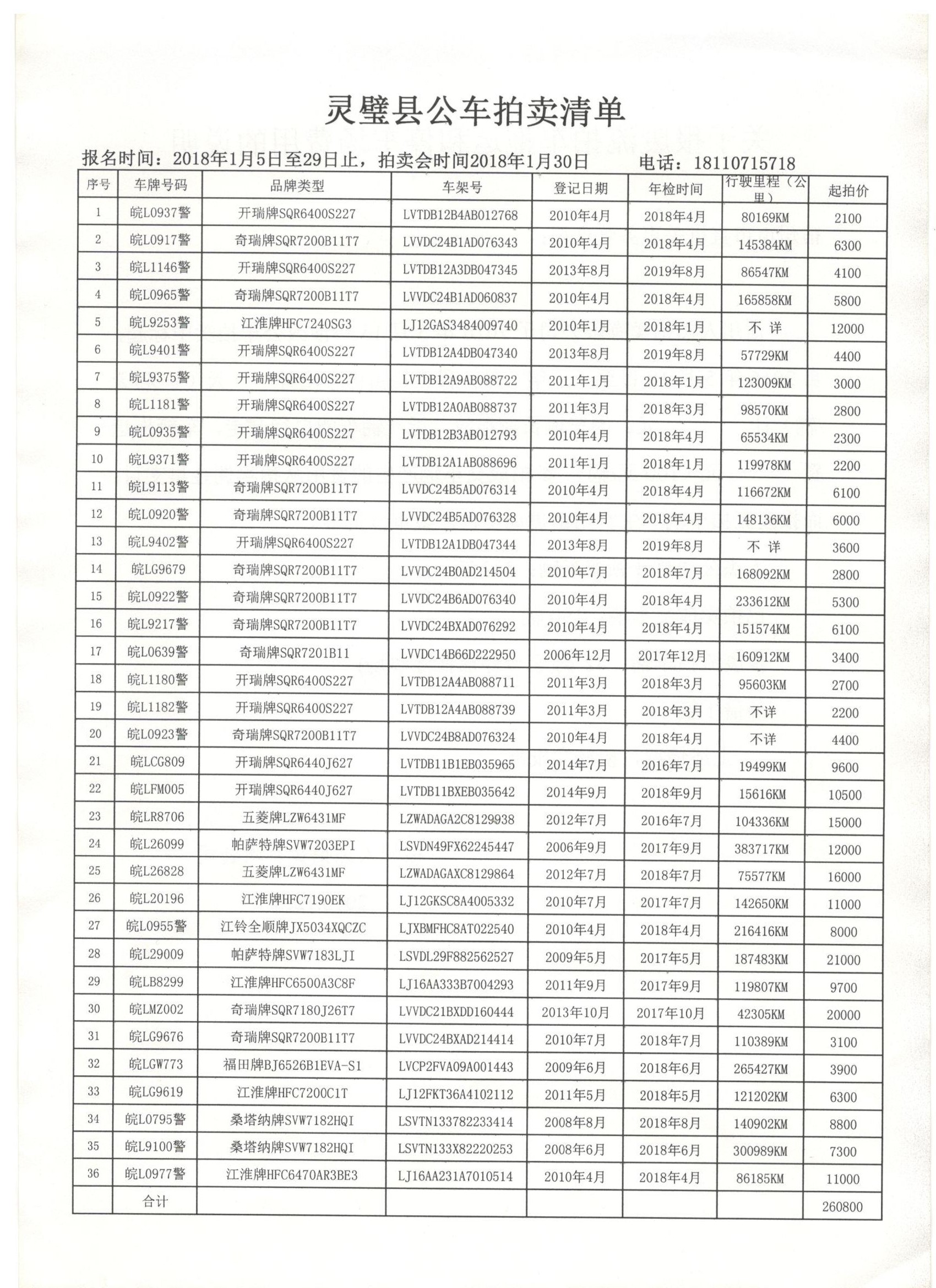 灵壁县涉改公车拍卖公告
