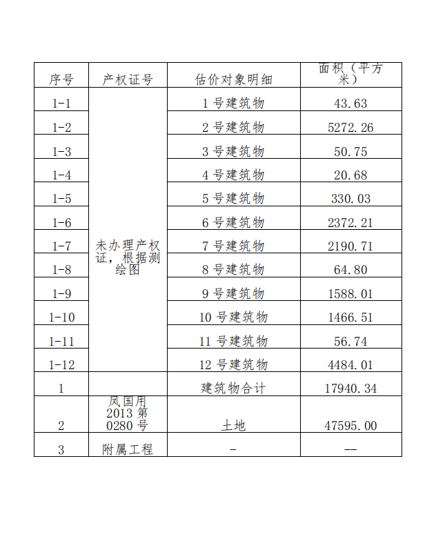 安徽优优反光材料有限公司建筑物、土地和附属工程,起拍价:1190万元(有保留价,未达到保留价不成交)。拍卖标的物现位于安徽优优反光材料有限公司厂区内,主要分为建筑物、土地和附属工程。建筑物主要为企业办公楼和生产厂房,总面积约为17940.34平方米,具体面积以实际现状为准。拍卖土地的土地证号为凤国用2013第0280号,土地面积为47595平方米,约为71.4亩,具体面积以证载为准。附属工程主要为门卫室、厕所等无证建筑。拍卖标的物具体情况请参见附件:拍卖标的物明细表。