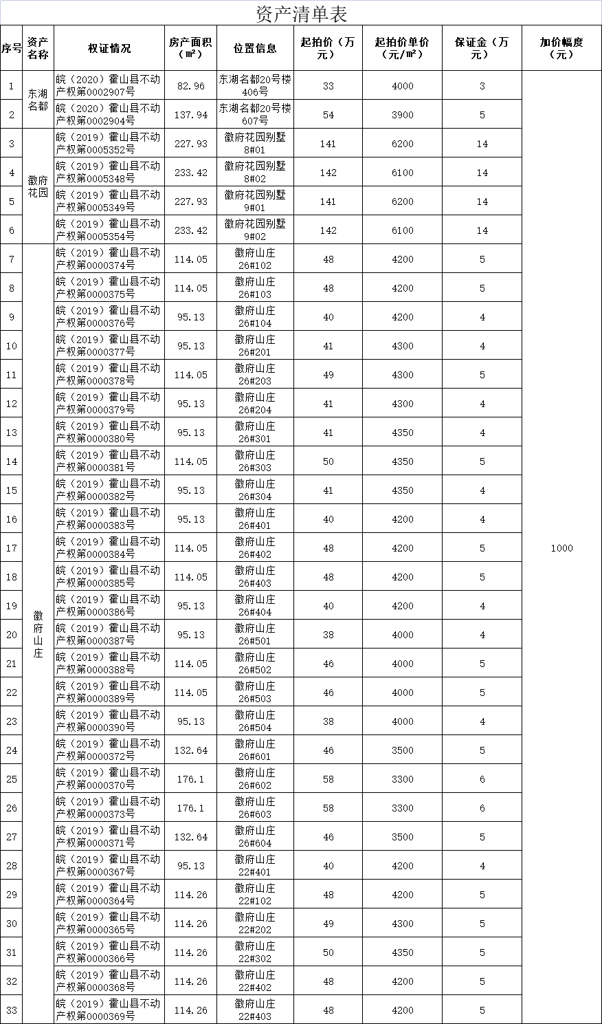 受委托,我公司于2021年6月24日上午10:30时在霍山县公共资源交易中心第二开标厅举办霍山县33处国有资产住宅进行公开拍卖。现公告如下:
