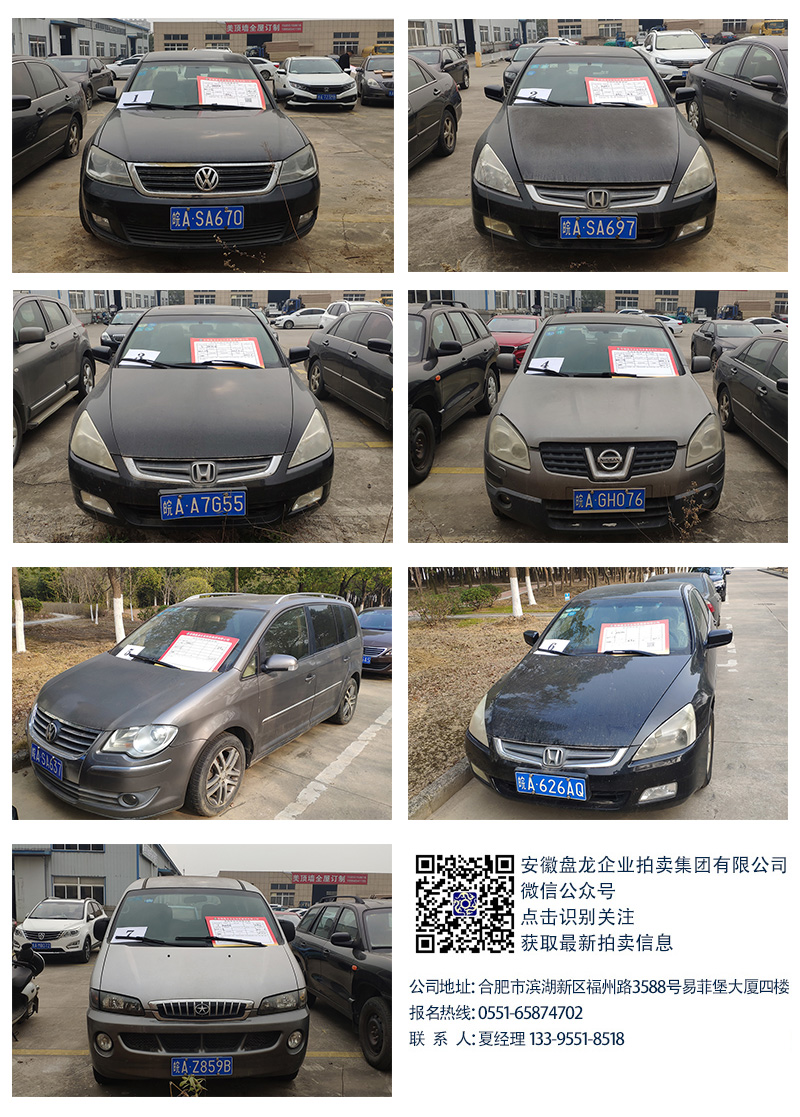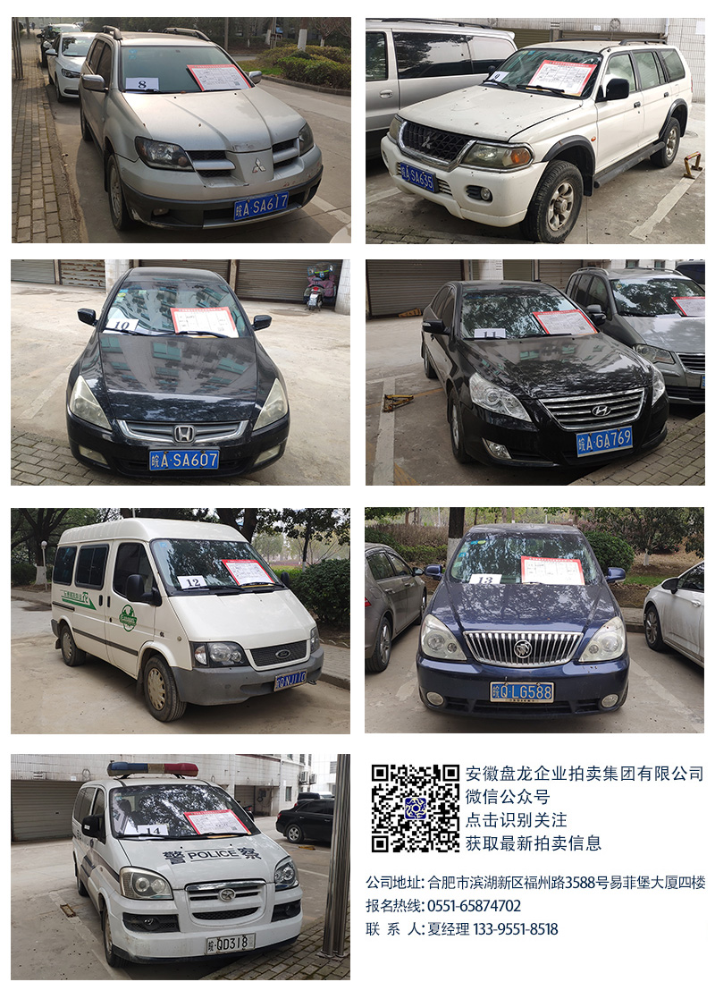 一、标的概况:二手机动车辆一批,共19台(本田、三菱、江铃、江淮、大众、现代、奔驰等),拍卖参考价:每台1000元-8万元不等,详见拍卖清单。