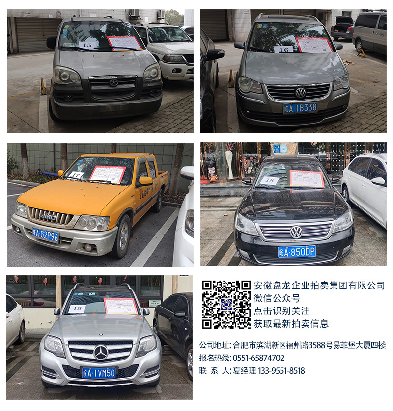 二、展示时间:公告之日至1月12日;展示地点:庐江县政府大院、庐江县荣信轿车维修服务有限公司停车场、我公司停车场。