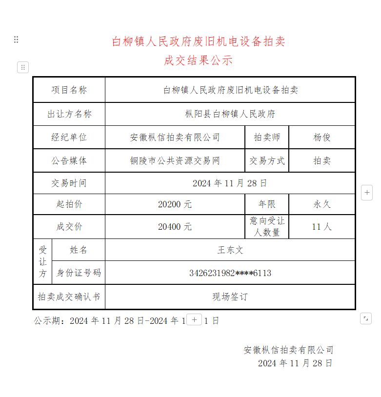 拍卖公告 受委托,本公司将于2024年12月4日15时在“公拍网”(…