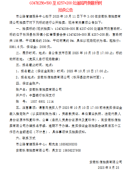 G347K256+500至K257+200处道路两侧意杨树 拍卖公告…