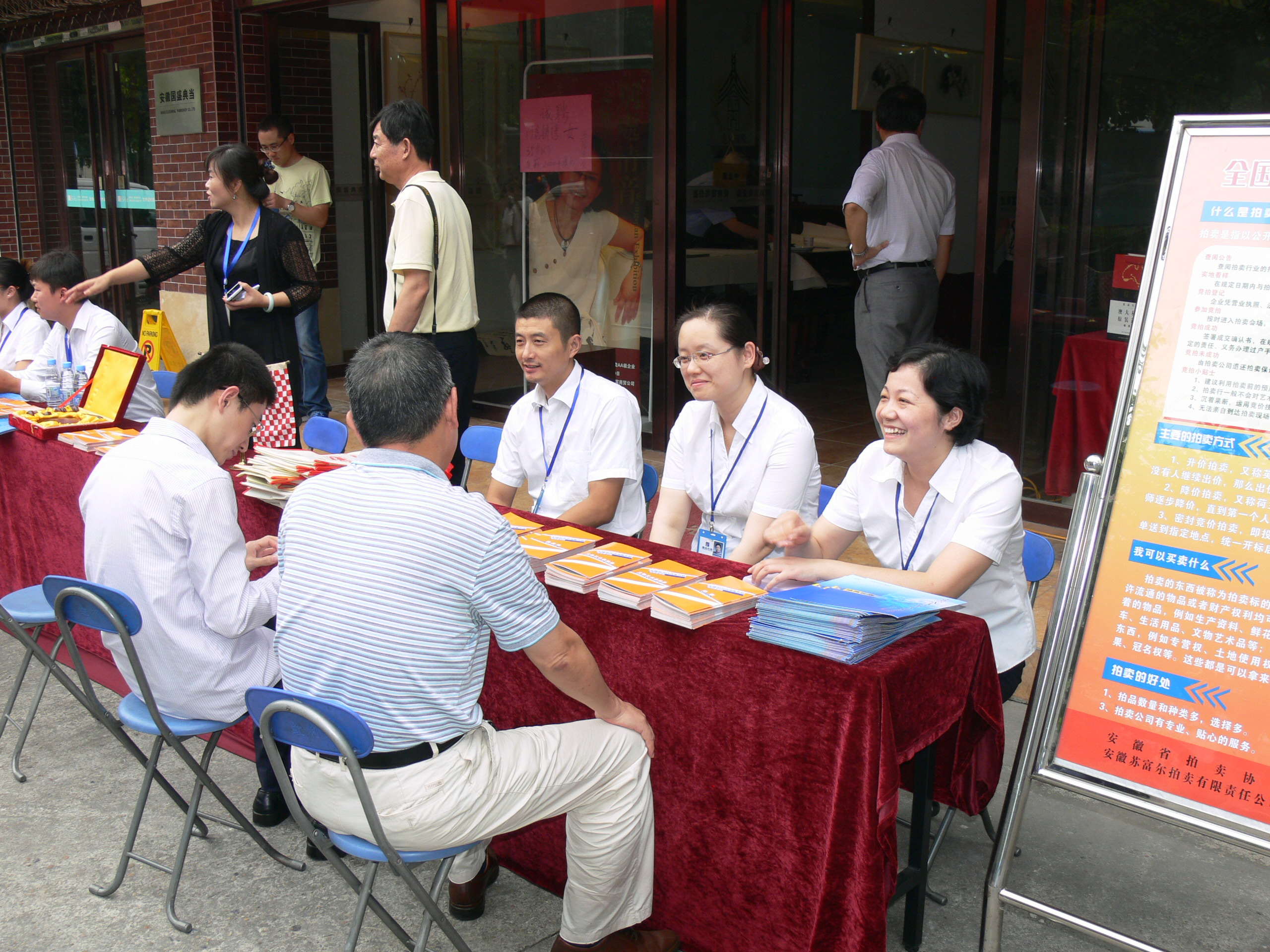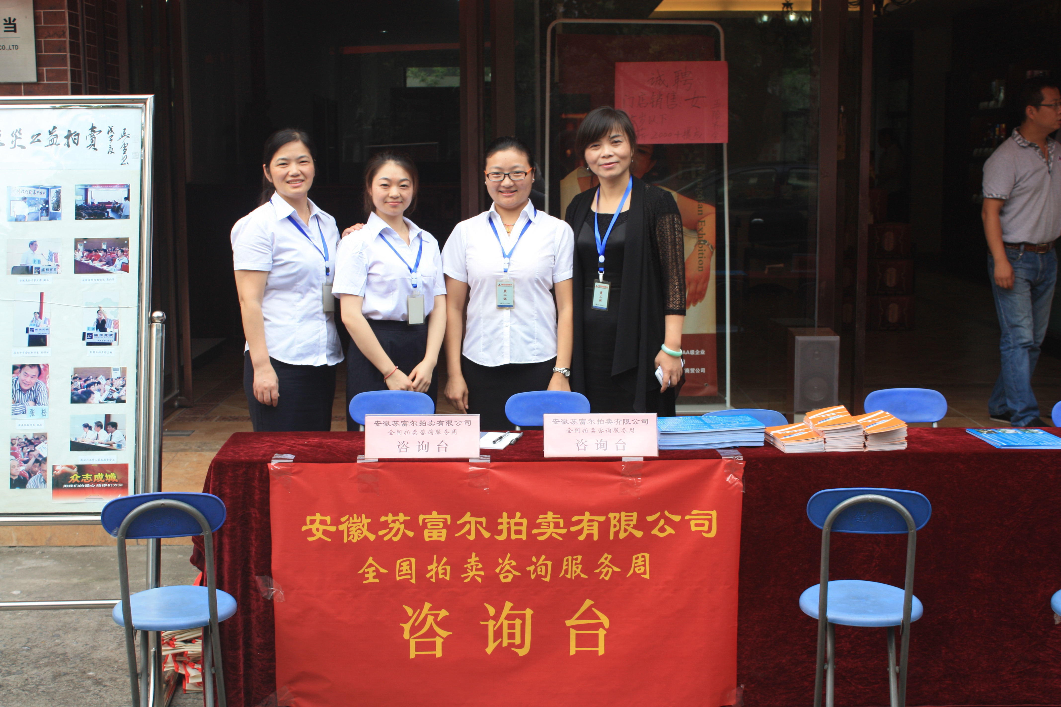 图为(安徽盛佳拍卖向居民解答) 图为(安徽苏富尔拍卖工作人员合影)