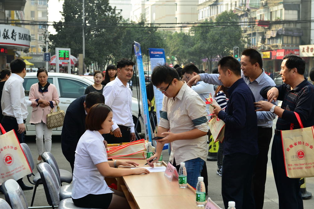 为了提高广大民众对“快乐拍卖”的参与度,现场特地准备了大量有关拍卖方面的宣传册和礼品,参与民众通过扫公众二维码,可以获得礼品,引起了过往民众的极大兴趣。