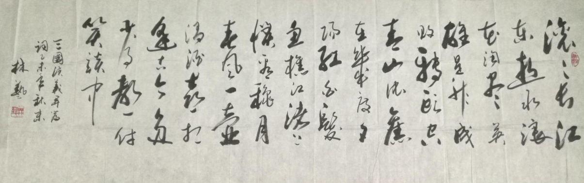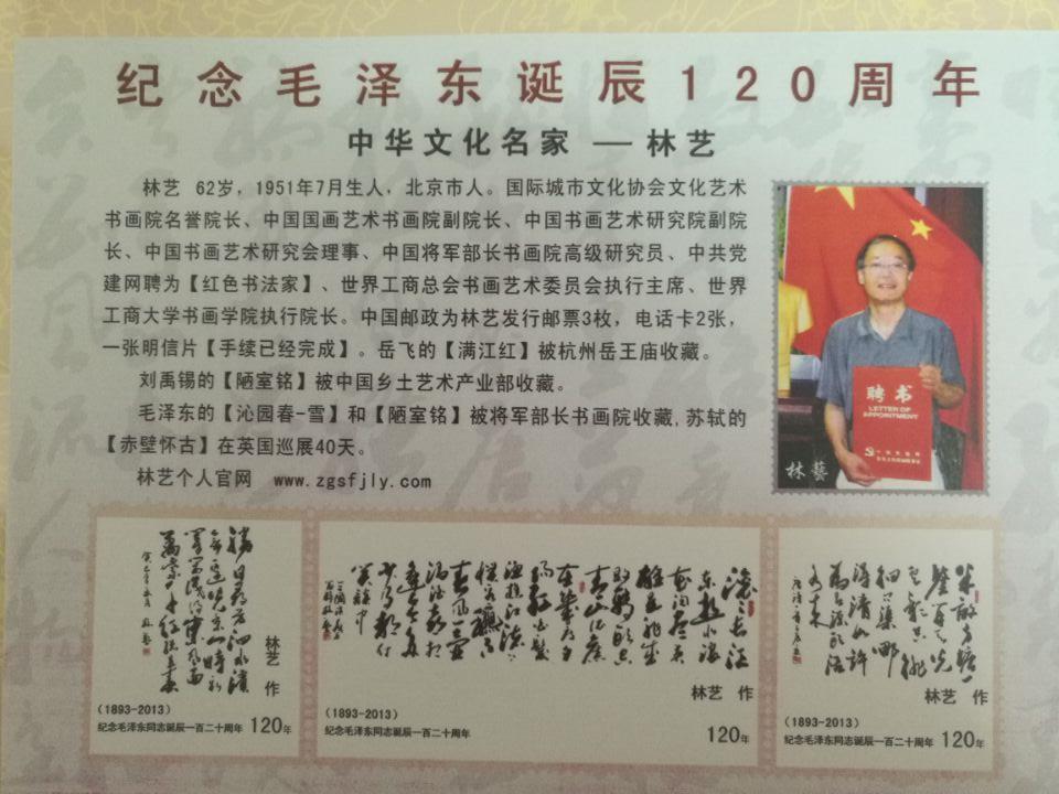 1. 书法家林艺先生“滚滚长江东逝水”书法作品一幅,附赠“中华名家专题纪念邮票”(册页)1份,参考价3800元(详见清单)。