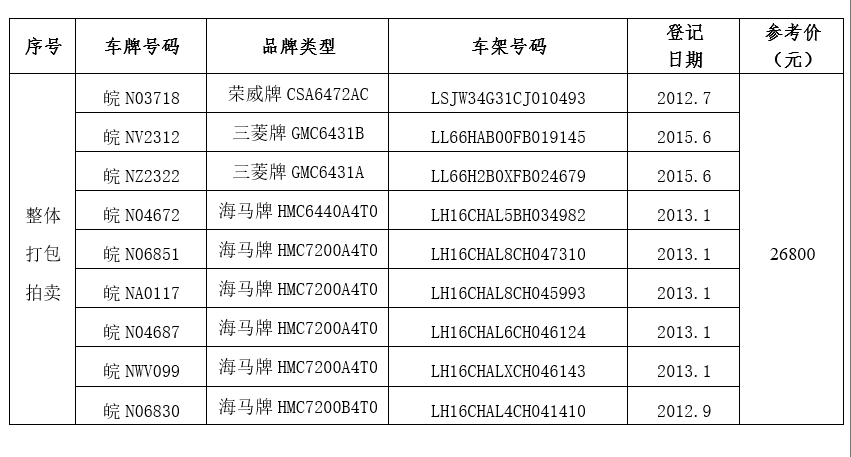 二、展示时间:自公告之日起至5月23日12时;看车地点:六安市。