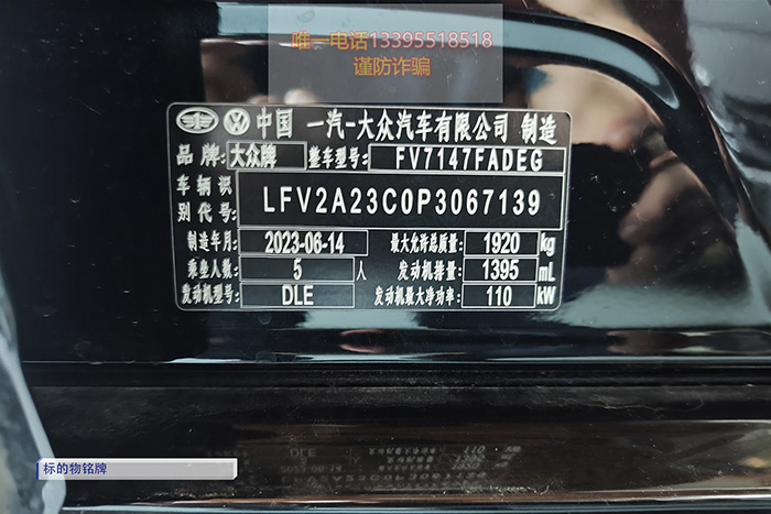 一、本次拍卖标的物:黑色一汽大众牌迈腾轿车九台(均未注册登记),车辆型号:FV7147FADEG,生产日期2023年6月14日至7月27日不等,均未注册登记,表显里程:不等,协议价:100000元/台。起拍价:100000元/台,保证金:10000元/台,增价幅度:1000元(以及其整数倍)。