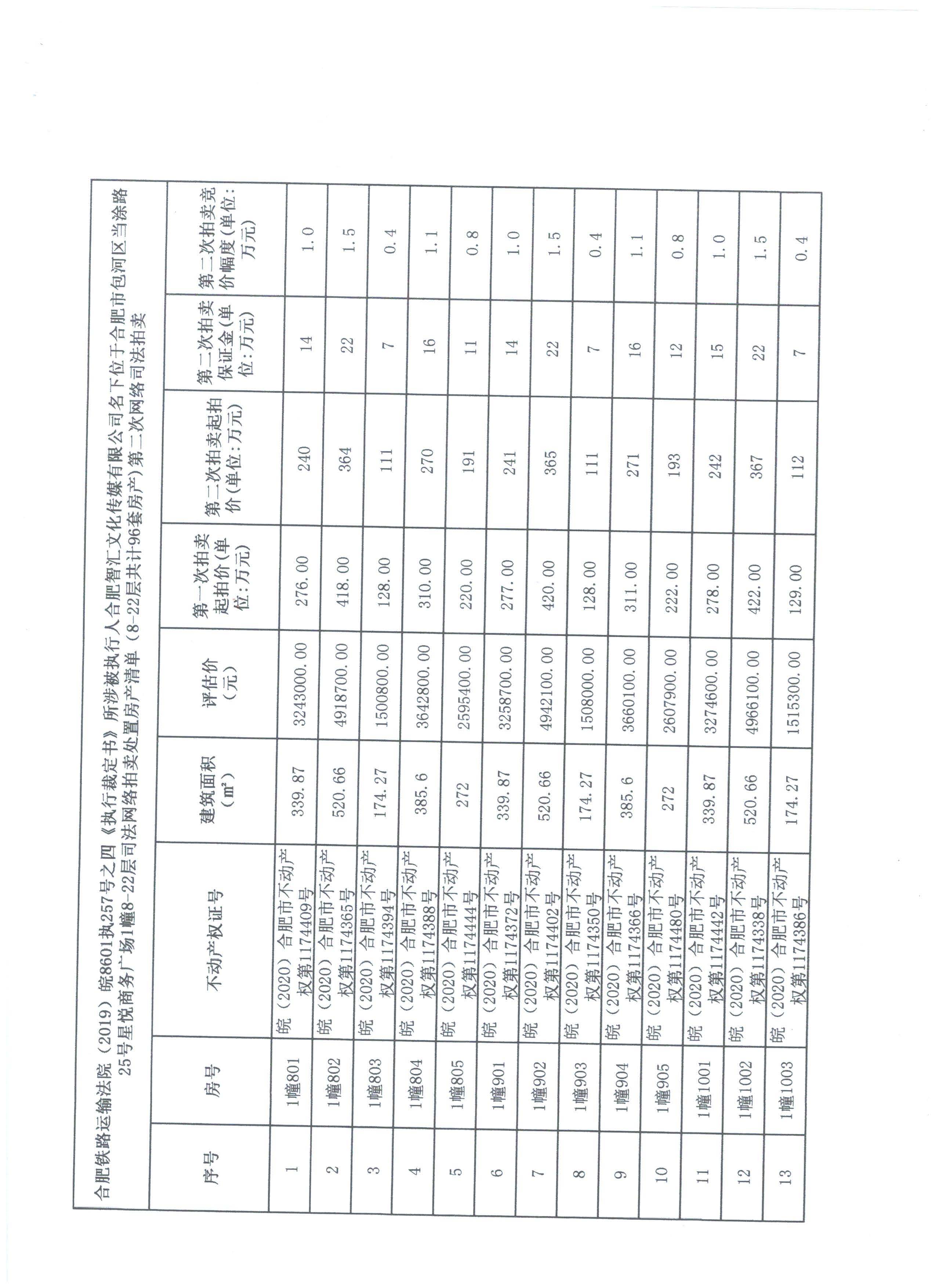 合肥市包河区当涂路25号星悦商务广场1幢8-22层办公房产,层数/总层数:8-22/26层,钢混,2019年建成。(单间拍卖,详见清单)