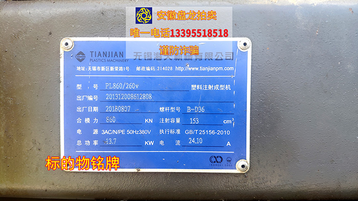 一、本次拍卖标的物:合肥市彬利电器有限公司所有的机械设备,名称:塑料注射成型机,型号:PL860/260V,出厂日期:2013年,螺杆型号:B-D36,数量:4台。