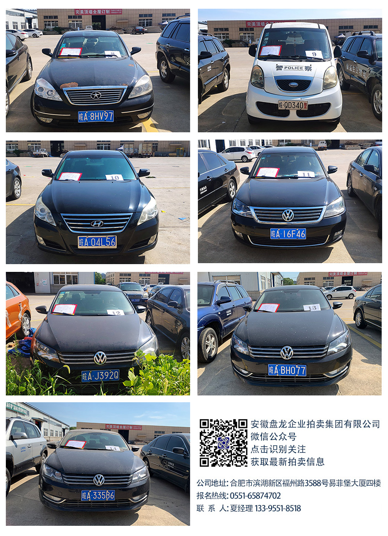 二、展示时间:公告之日至8月22日;展示地点:庐江县荣信轿车维修服务有限公司停车场。