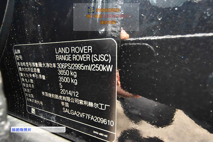 一、本次拍卖标的物:车牌号为皖A0NK19的车辆,车辆识别代码:SALGA2VF7FA209610,厂牌型号:揽胜牌/SALGA2VF,车辆类型:小型越野客车,发动机号:14121200412306PS,制造日期:2014年12月,初次登记日期:2015年4月1日,表显里程:92606KM,检验有效期至:2025年4月30日,保险终止日期:2024年7月2日,更多详细信息见评估报告,评估价:195055元。起拍价:195055元,保证金:20000元,增价幅度:1000元(以及其整数倍)。